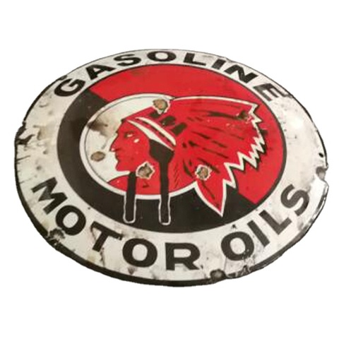 Custom Logo Gedrukt Reclame Benzine Motor Olie Decoratie Metalen Tin Porselein Wegwijzer Plaat Ronde Koepelvormige Vintage Emaille Teken